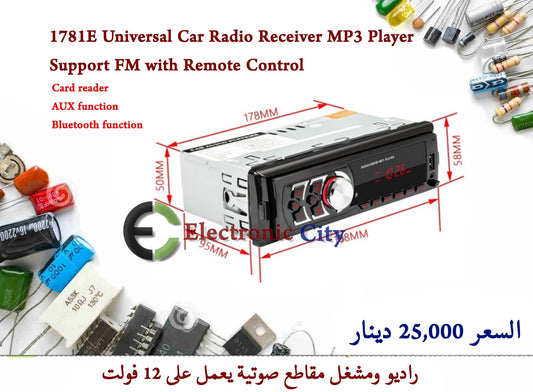 1781E Universal Car Radio Receiver MP3 Player, Support FM with Remote Control