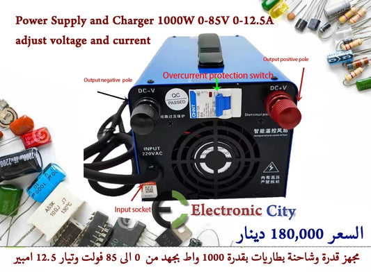 Power Supply and Charger 1000W 0-85V 0-12.5A adjust voltage and current