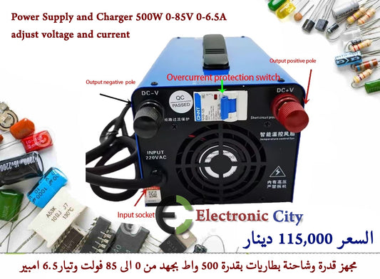 Power Supply and Charger 500W 0-85V 0-6.5A adjust voltage and current
