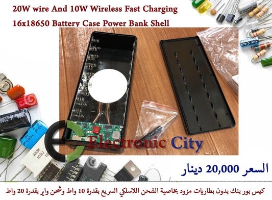 20W wire And 10W Wireless Fast Charging 16x18650 Battery Case Power Bank Shell