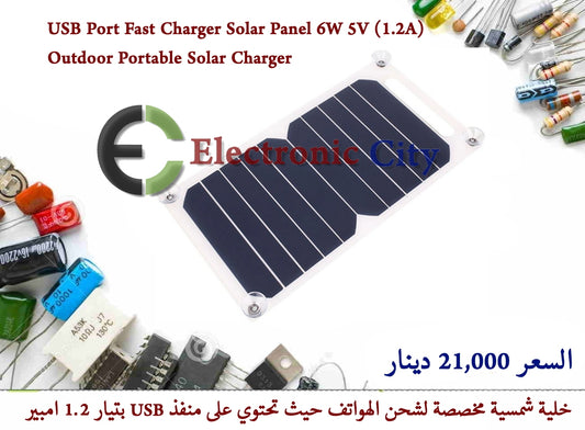 USB Port Fast Charger Solar Panel 6W 5V (1.2A) Outdoor Portable Solar Charger