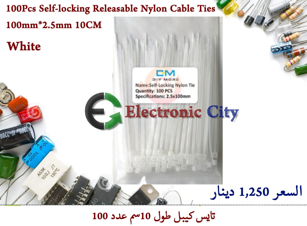 100Pcs Self-locking Releasable Nylon Cable Ties 100mmX2.5mm 10CM Blue.5mm 10CM White #Y9