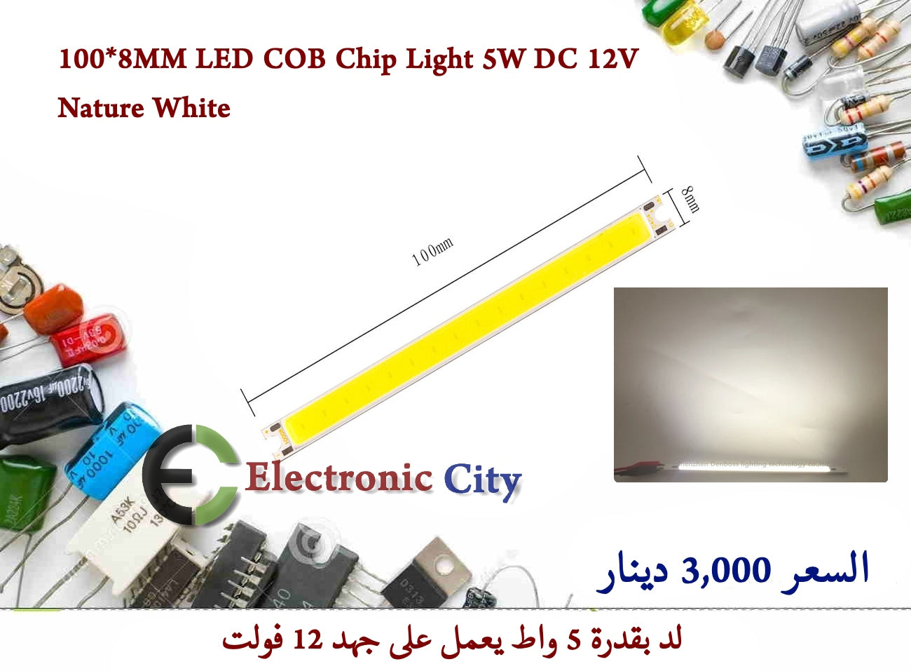 100X8MM LED COB Chip Light 5W DC 12V Nature White