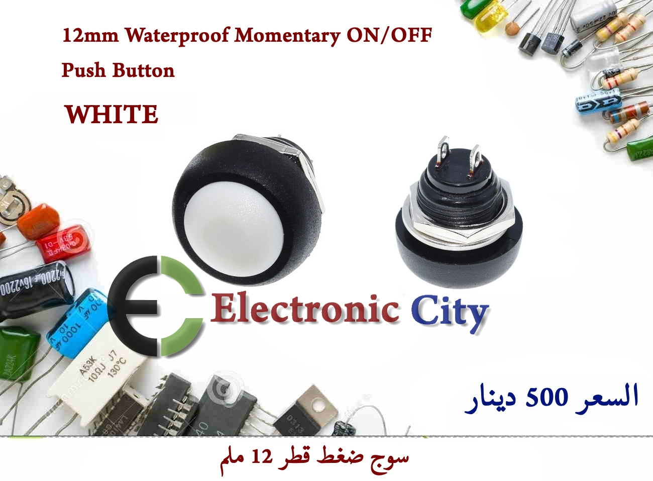 12mm Waterproof Momentary ON-OFF Push Button WHITE