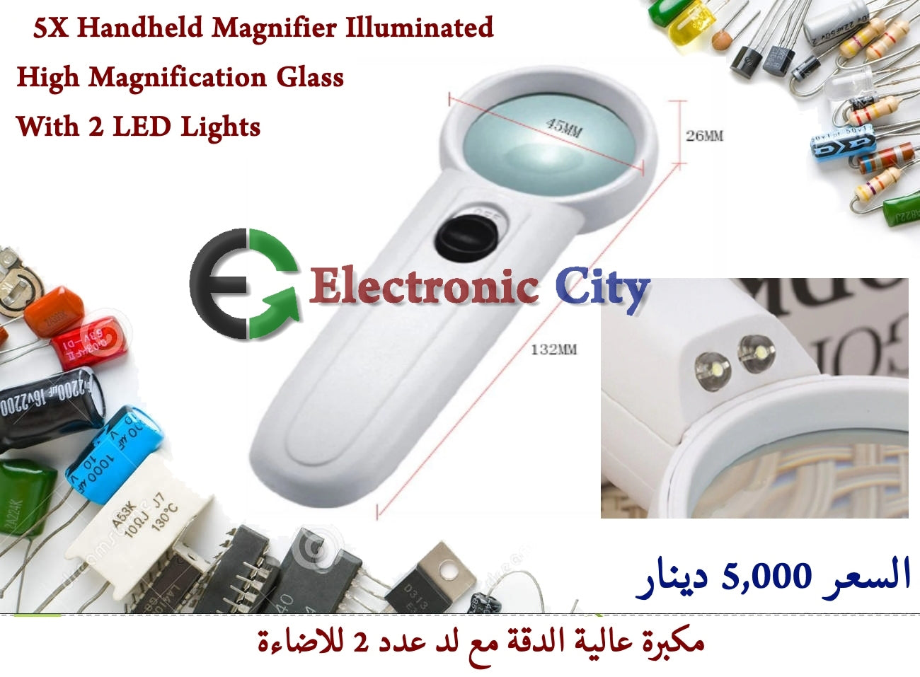 15X Handheld Magnifier Illuminated High Magnification Glass 2 LED Lights #C8 050235