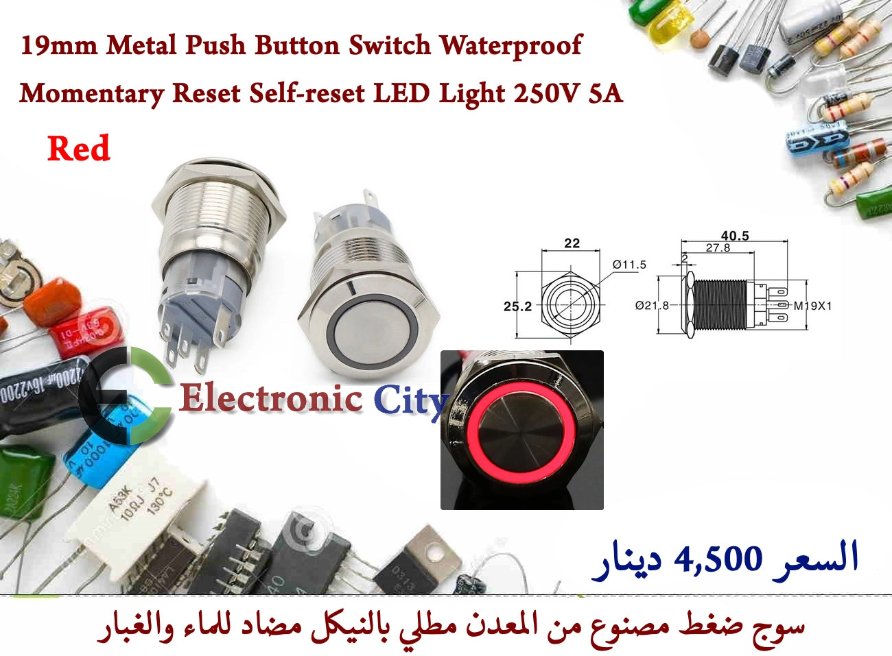 19mm Metal Push Button Switch Waterproof Momentary Reset Self-reset LED Light 250V 5A Red #B7 X52475