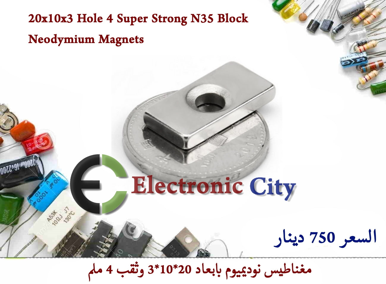 20x10x3 Hole 4 Super Strong N35 Block Neodymium Magnets #F8. 011242