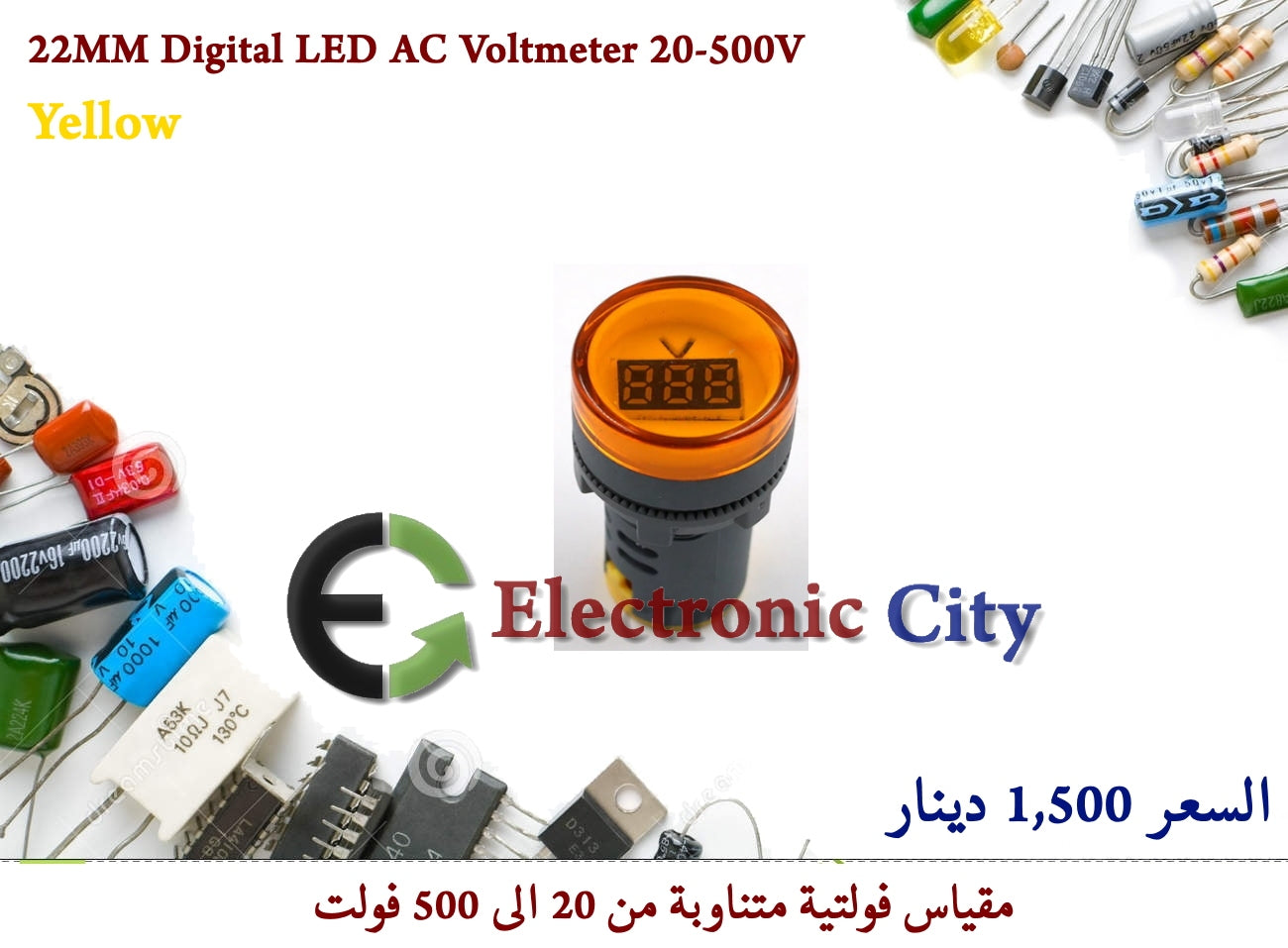 22MM Digital LED AC Voltmeter 20-500V Yellow