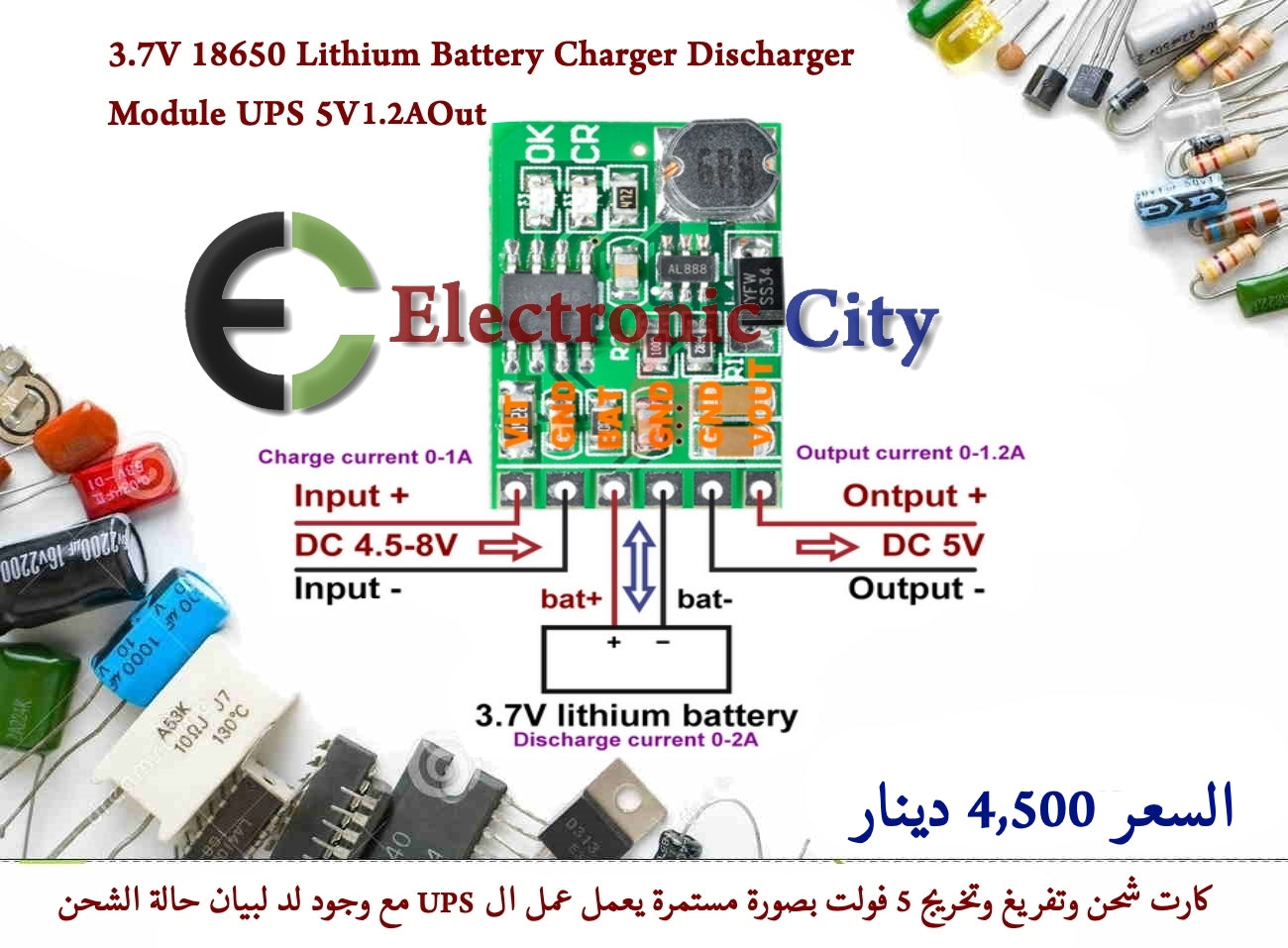 يعمل على تخريج 5 فولت 1.2 امبير بصورة مستمرة مشابه لعمل ال UPS مع وجود لد لبيان حالة الشحن