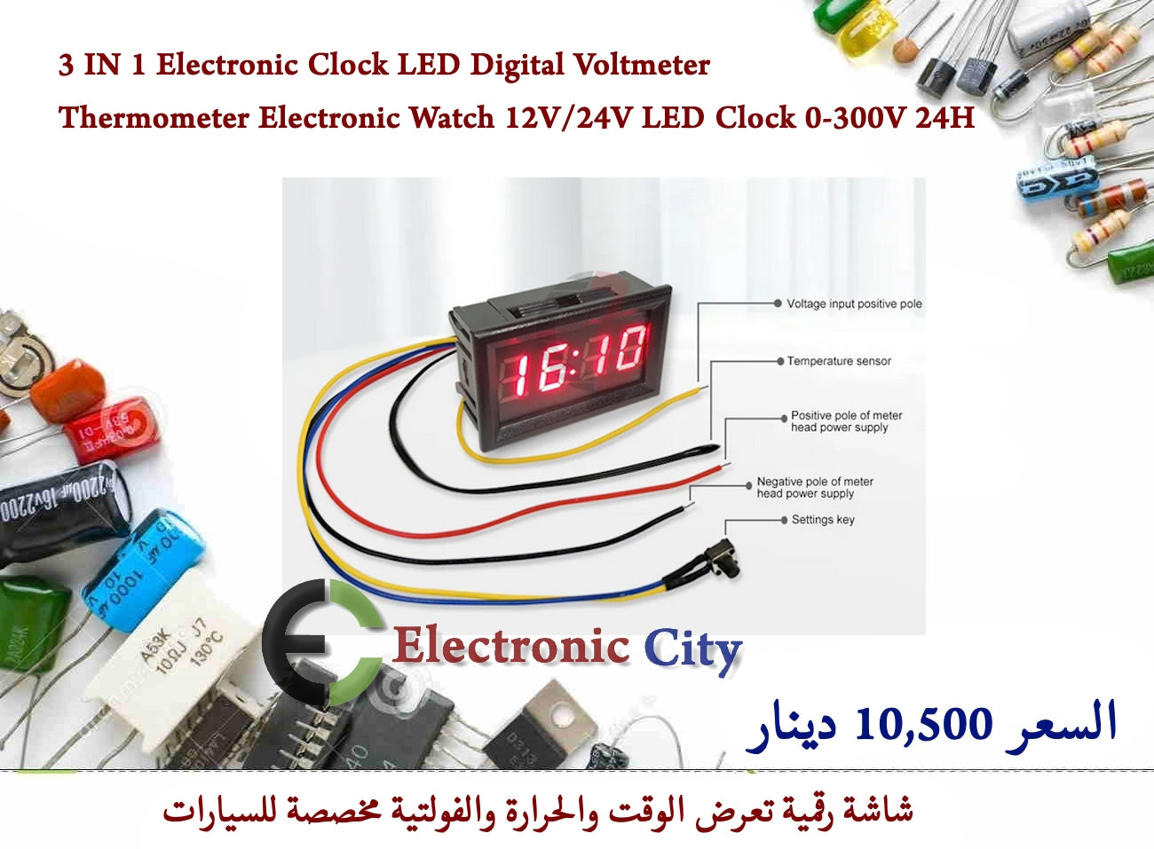 3 IN 1 Electronic Clock LED Digital Voltmeter Thermometer Electronic Watch 12V-24V LED Clock 0-300V 24H #E3 GXQA0158-001