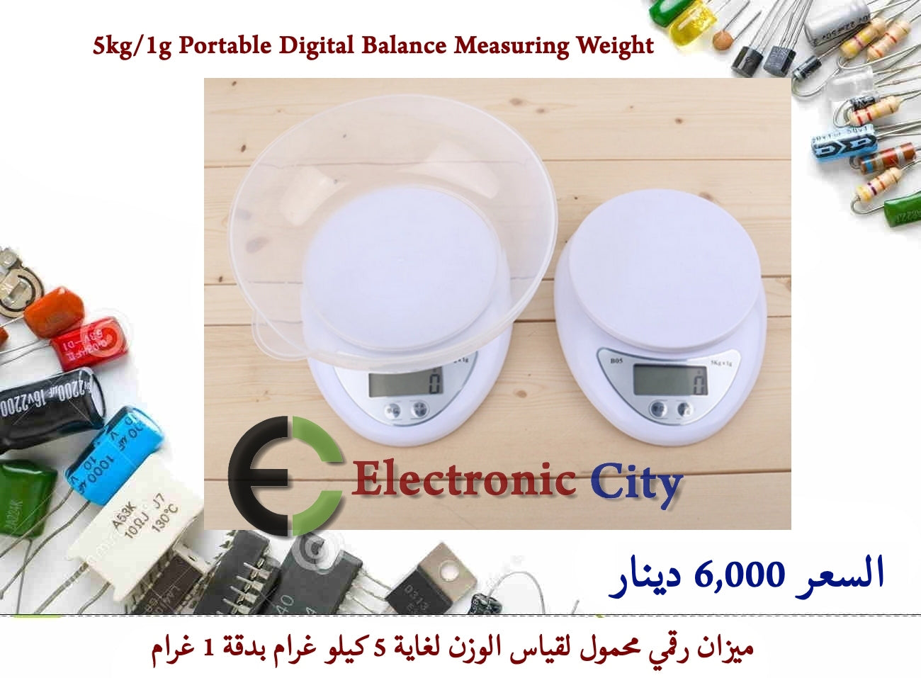 ميزان رقمي محمول بدقة 1 غرام يمكن اشتخدامهة لقياس الاوزان لغاية 5 كيلو غرام
