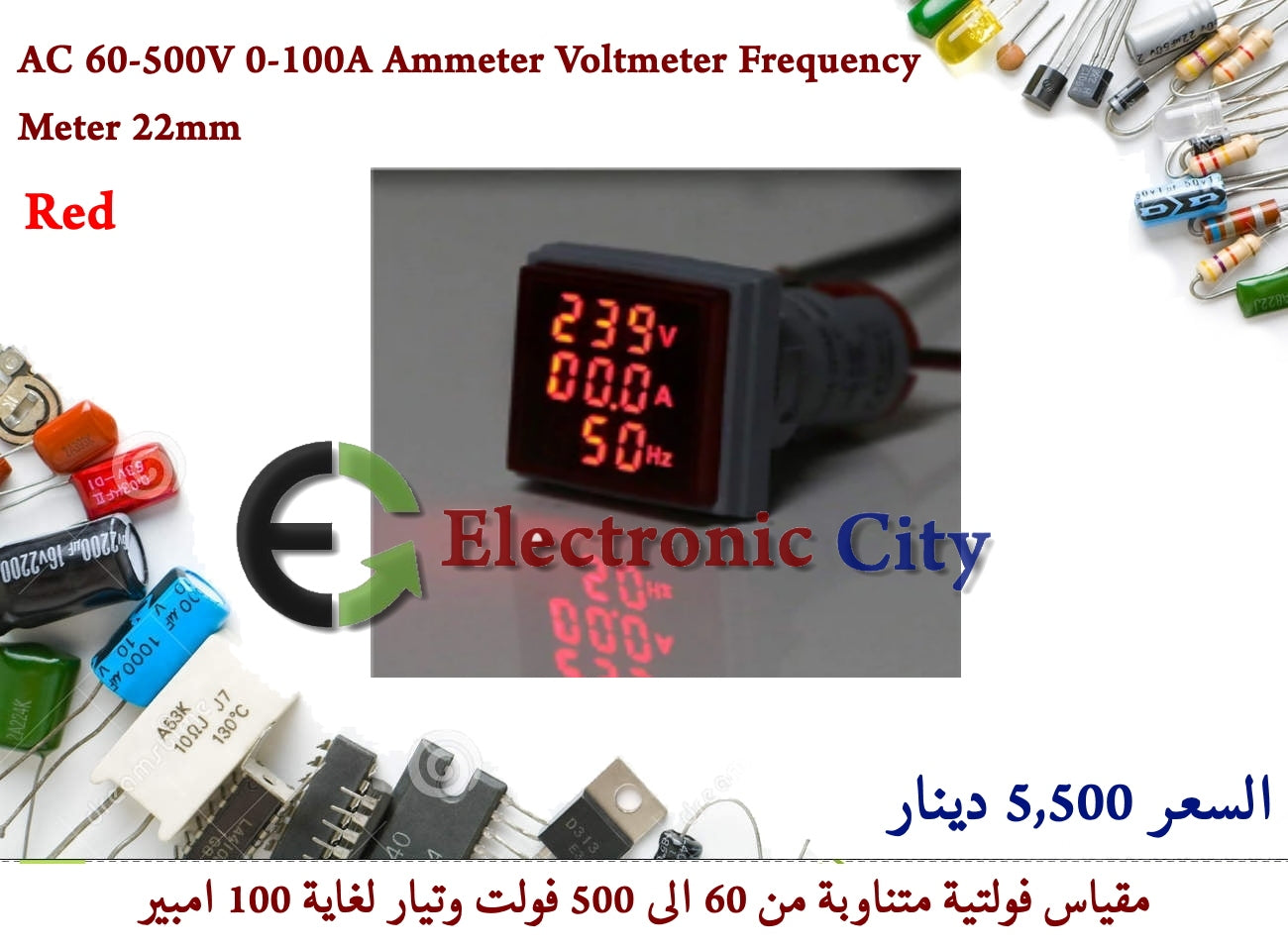 AC 60-500V 0-100A Ammeter Voltmeter Frequency Meter 22mm Red #E 1