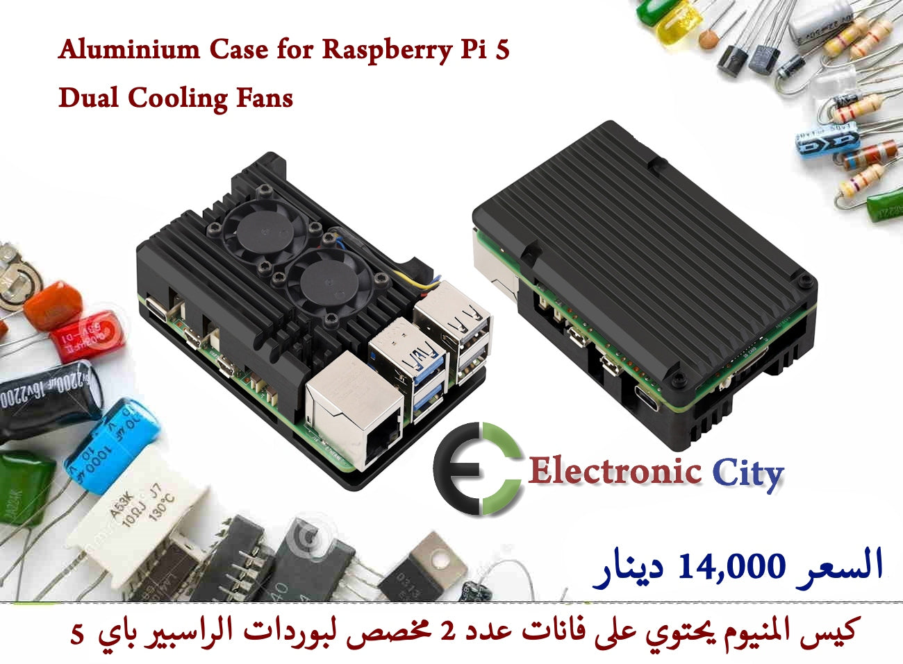 Aluminium Case for Raspberry Pi 5 Dual Cooling Fans 12477