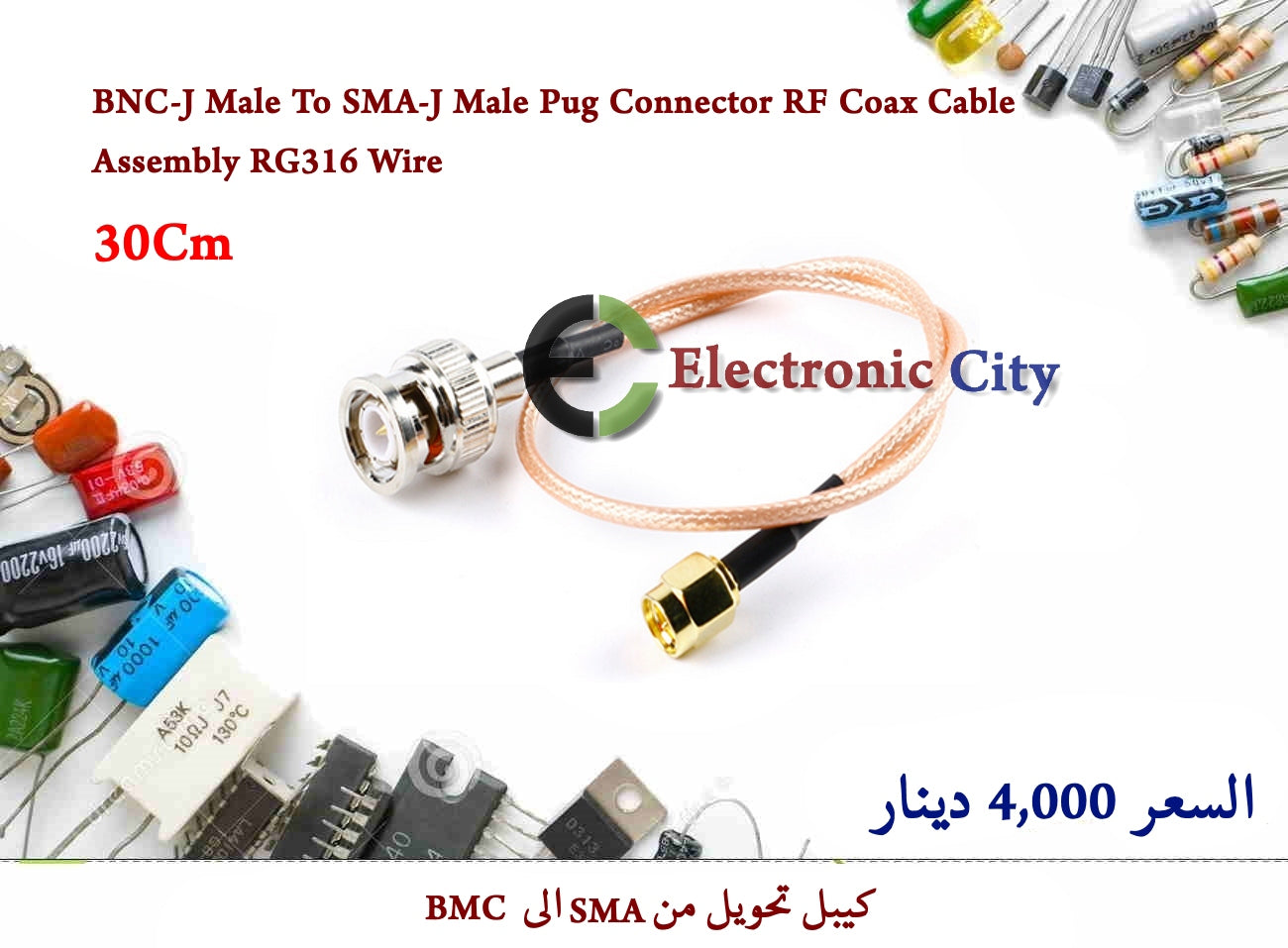 BNC-J Male To SMA-J Male Pug Connector RF Coax Cable Assembly RG316 Wire 30cm