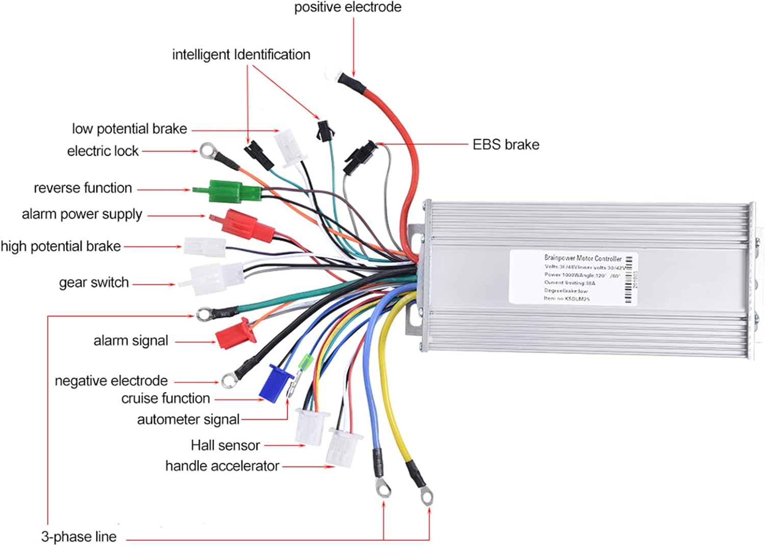 Brushless Controller, 36V/48V 1000W Brushless Motor Sine Wave Controller for Electric Bicycle Scooter Tricycle Brush Motor Control
