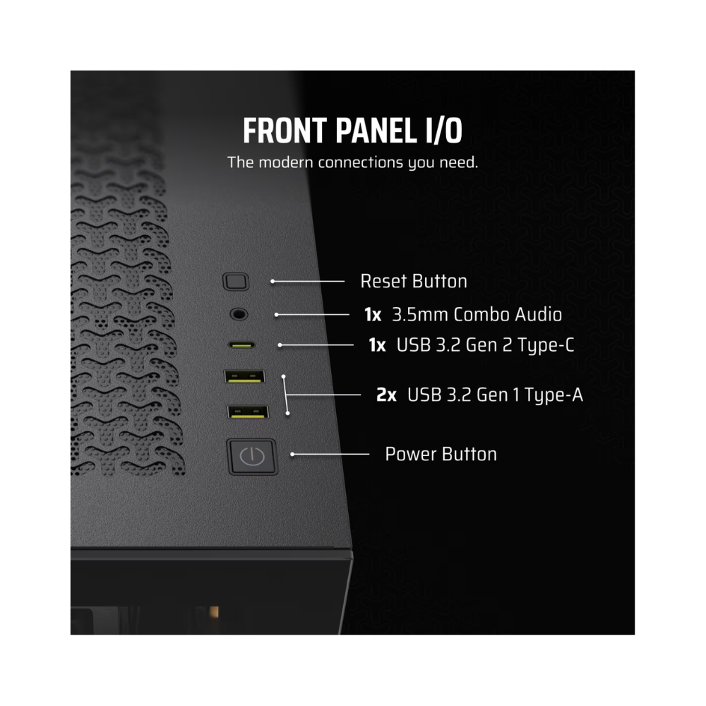 - Case Front IO (1x) USB 3.2 Gen 2 Type-C, (2x) USB 3.2 Gen 1 Type-A, (1x) Audio in/out