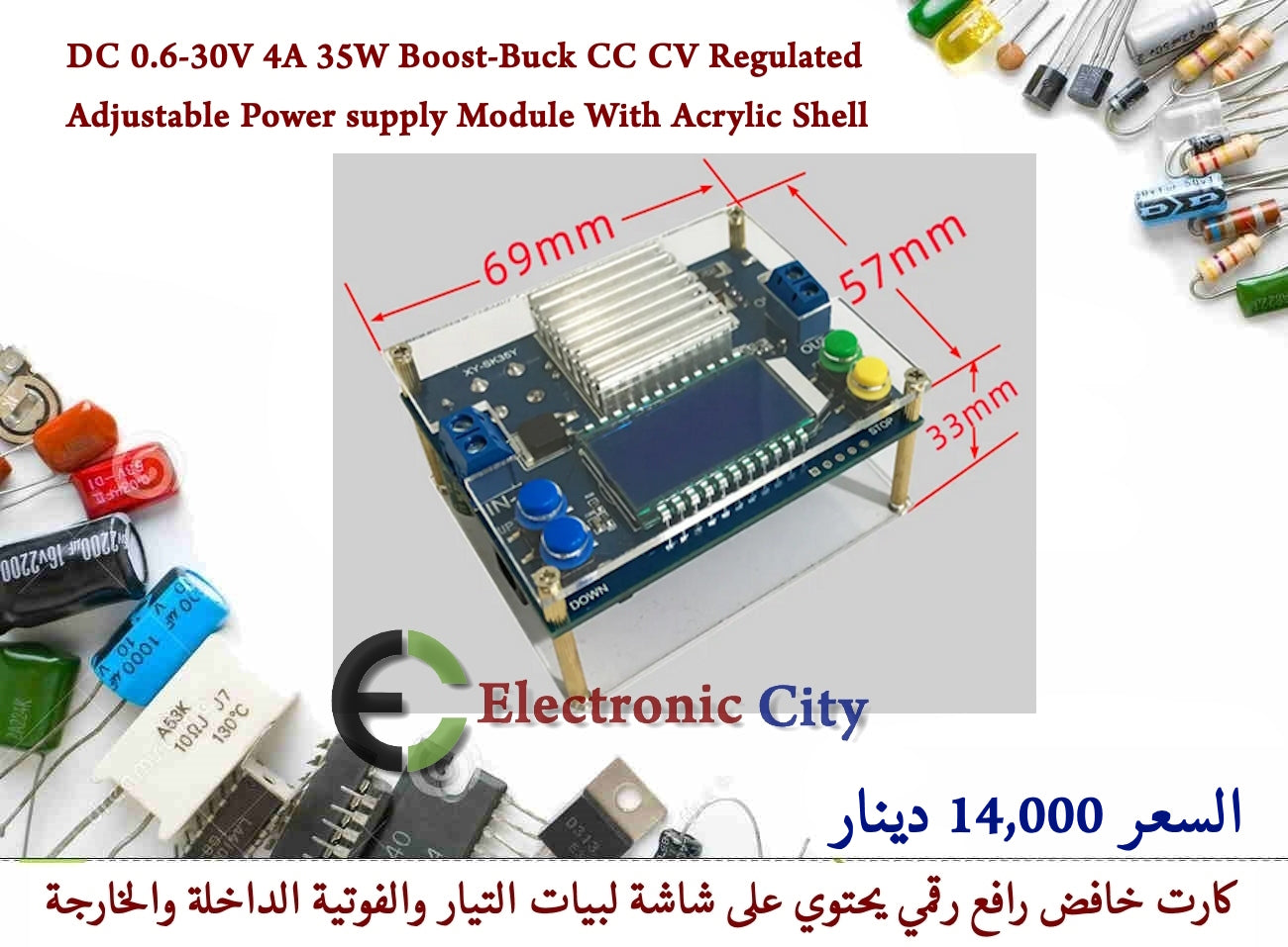 DC 0.6-30V 4A 35W Boost-Buck CC CV Regulated Adjustable Power supply Module With Acrylic Shell