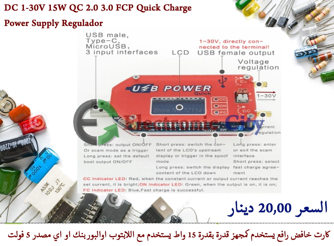 لان هذا الكارت راح ينطيك فولتية متغيرة من 1 الى 30 فولت بقدرة 15 واط بسهولة من خلال التحكم بالفولتية الخارجة والتيار الخارج ايضا