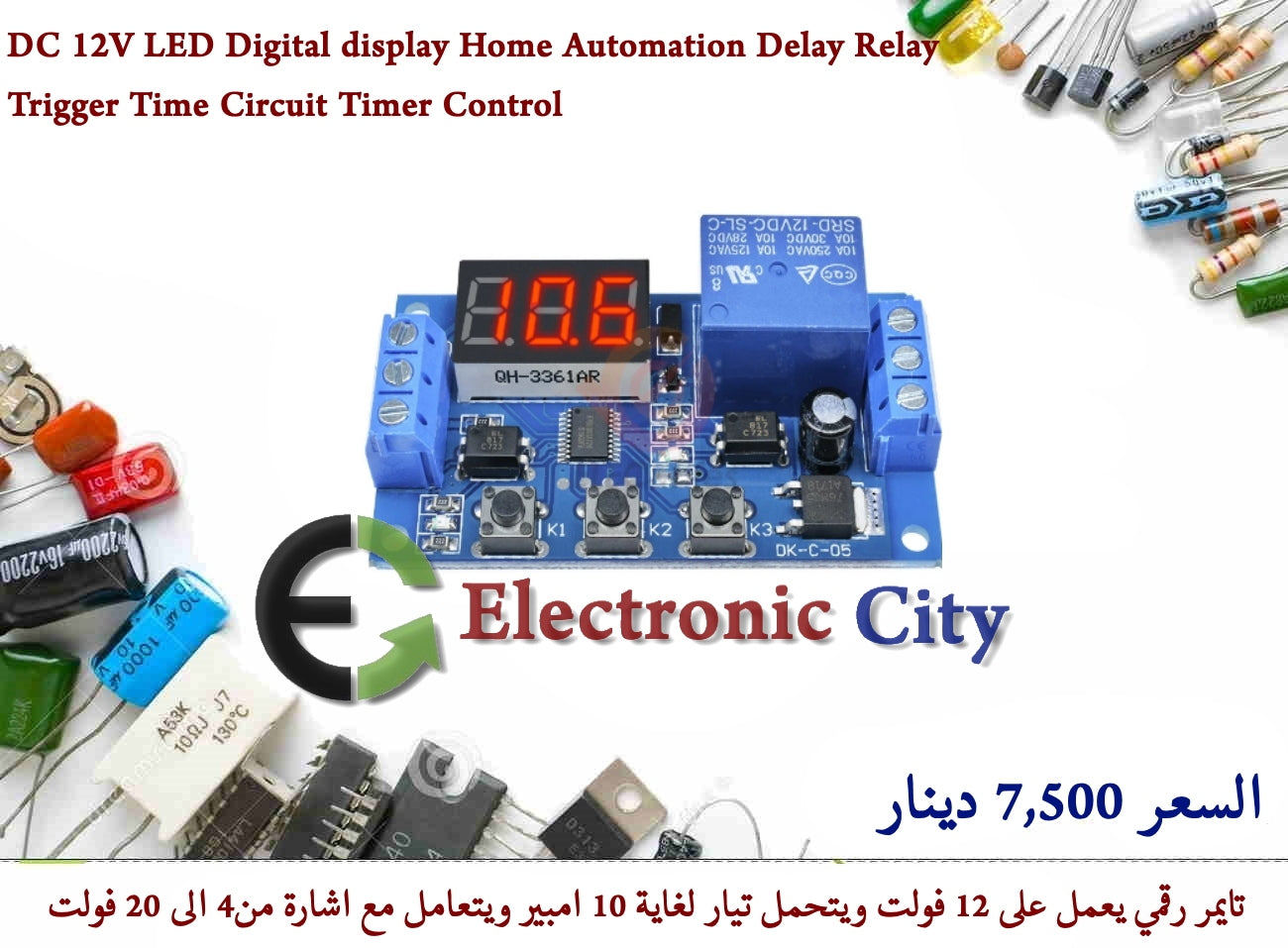 تايمر ريقمي يعمل على 12 فولت ويتحمل تيار لغاية 10 امبير