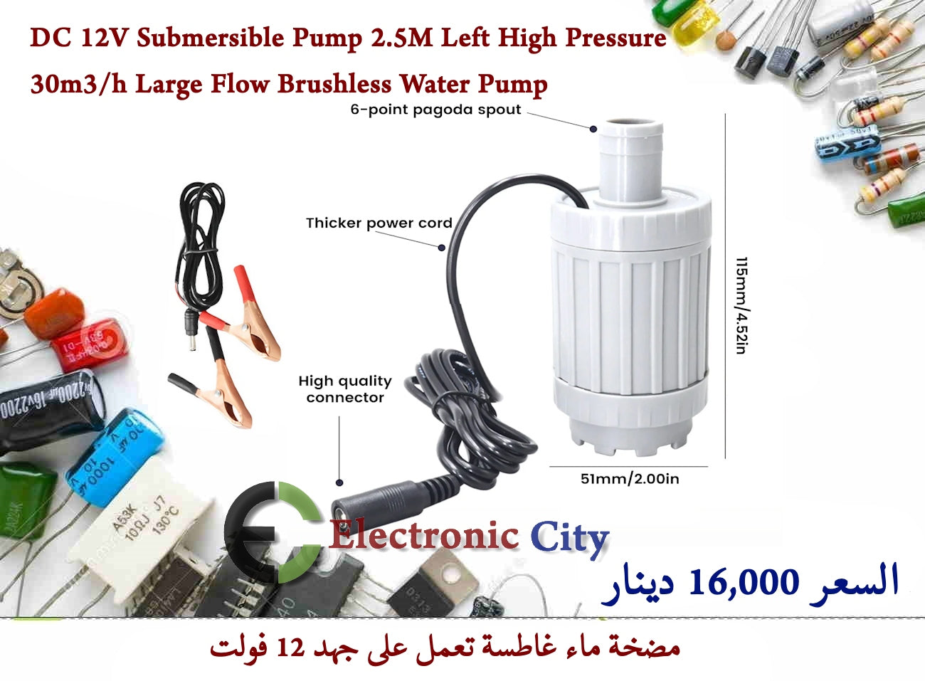 DC 12V Submersible Pump 2.5M Left High Pressure 30m3-h Large Flow Brushless Water Pump #I12 JAAE0004-001