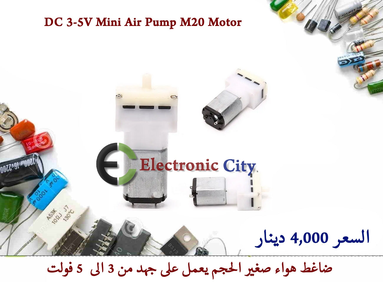 ضاغط هواء صغير الحجم يعمل على جهد من 3 الى 5 فولت
