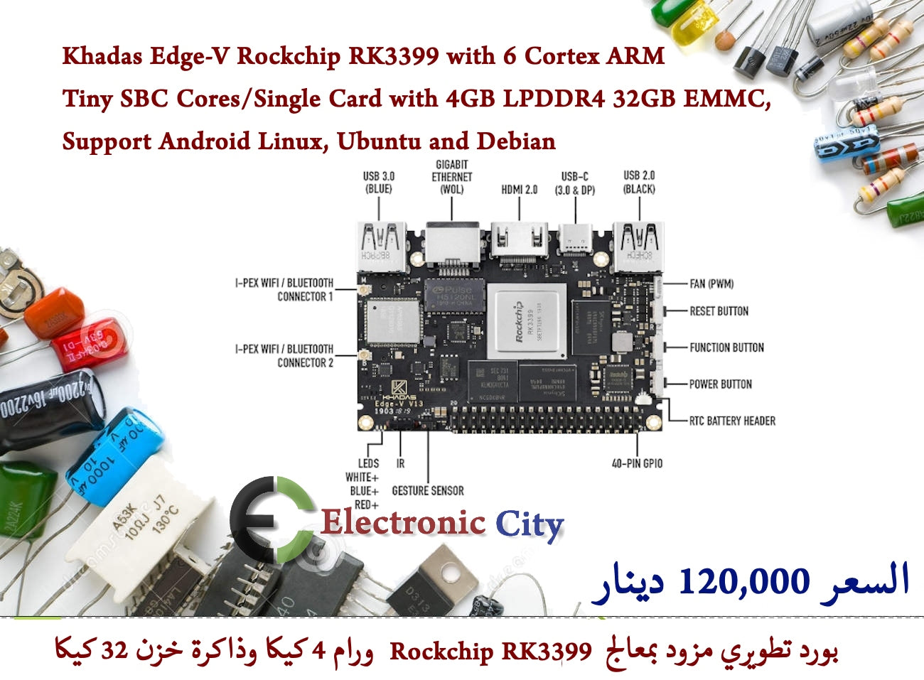 Rockchip RK3399 ورام 4 كيكا وذاكرة خزن 32 كيكا