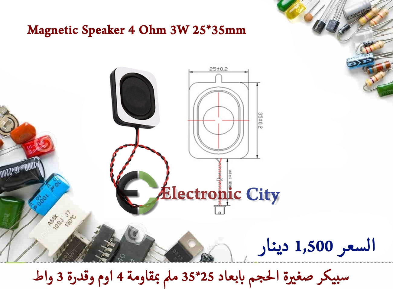 سبيكر صغيرة الحجم بابعاد 25*35 ملم بمقاومة 4 اوم وقدرة 3 واط