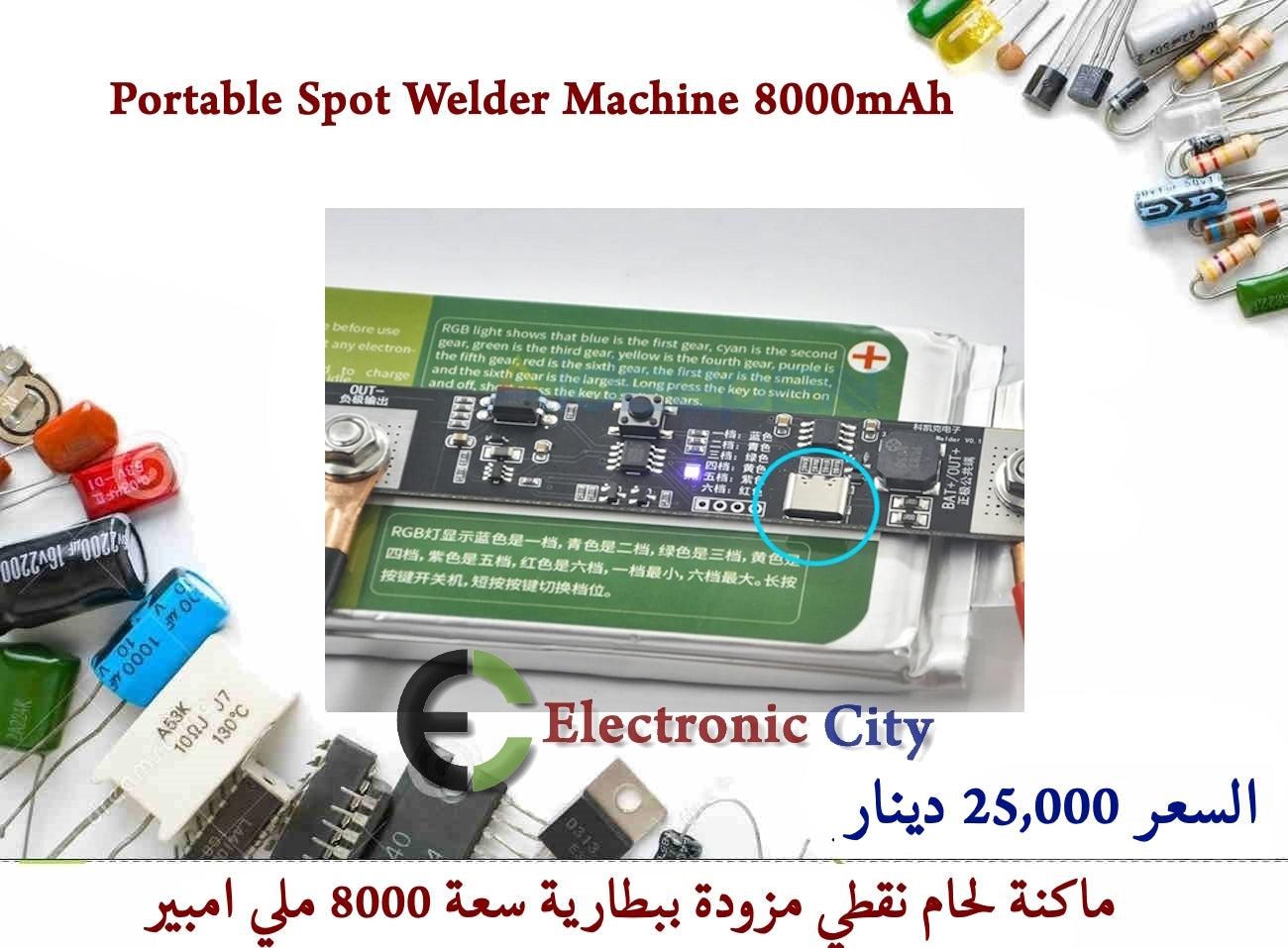 ماكنة لحام نقطي محمولة مزودة ببطارية سعة 8000 ملي امبير