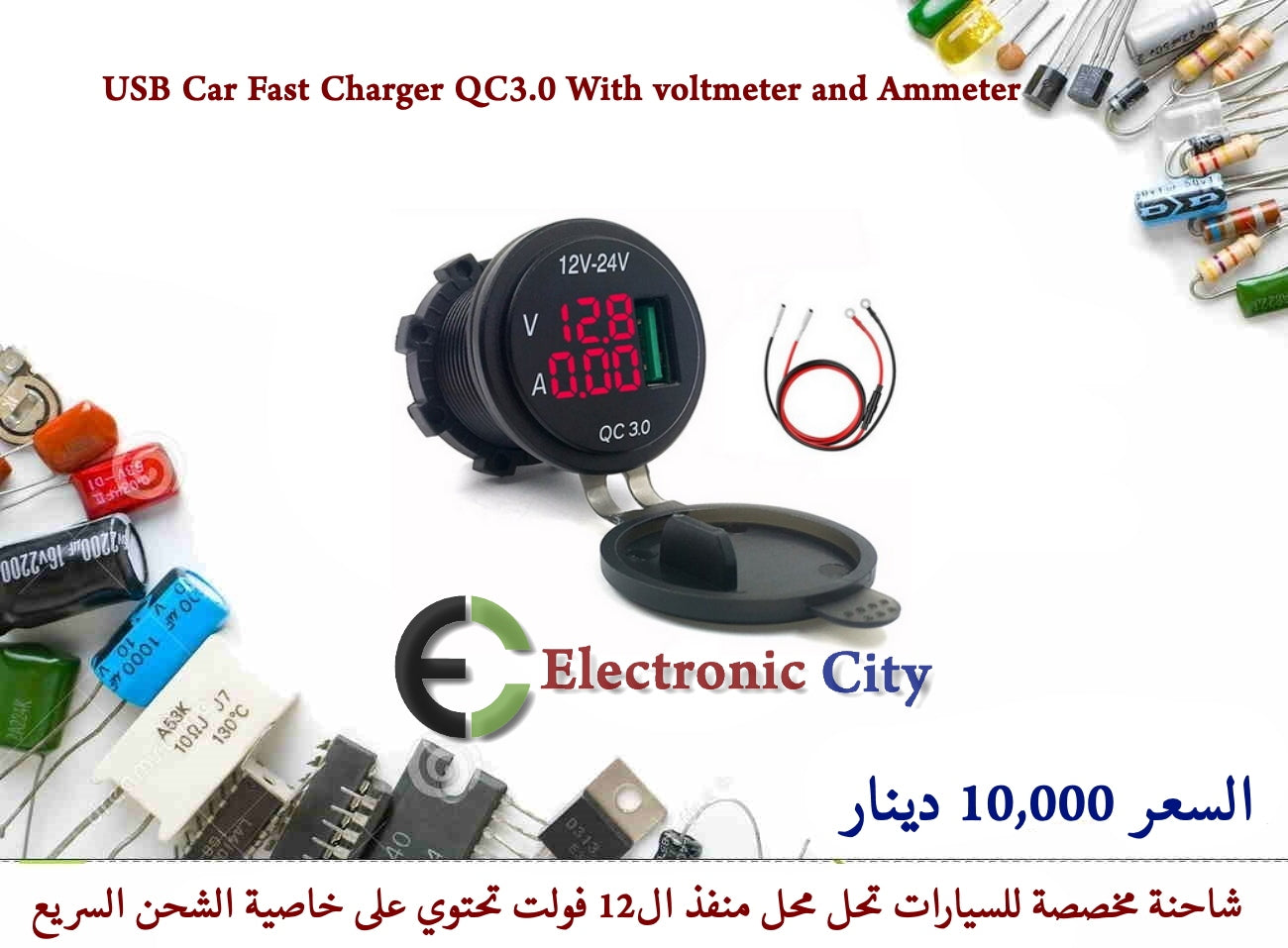 USB Car Fast Charger QC3.0 With voltmeter and Ammeter